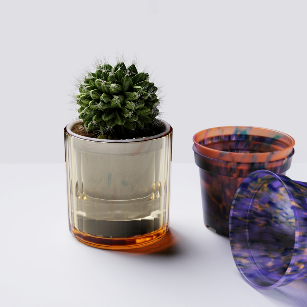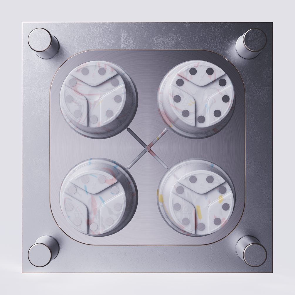 Multicolored Recycled plastic can deliver fantastic results in terms of patterns and visual impact due to the pressure of pressing sheets or the flow of material in molds during the injection process.